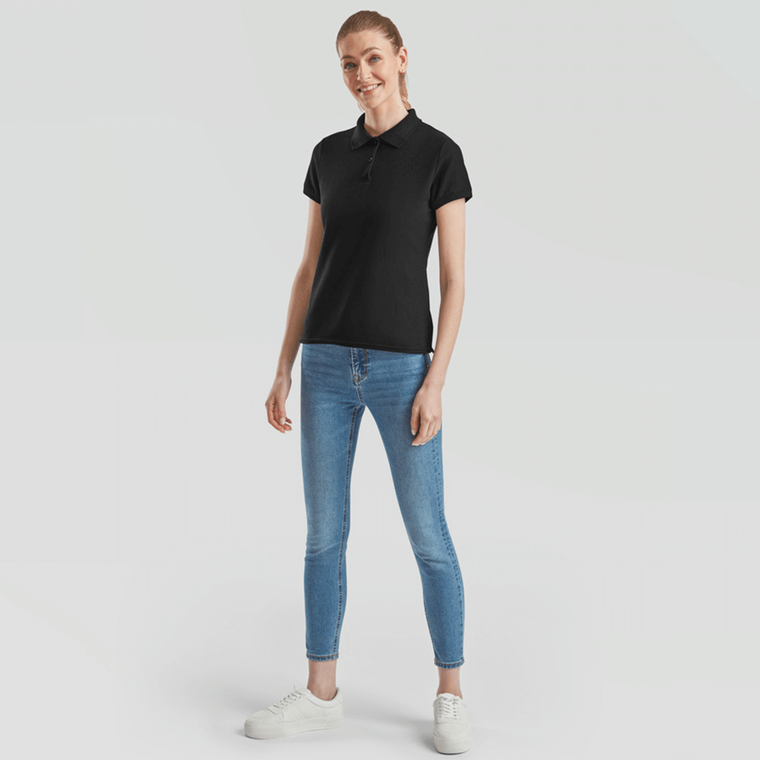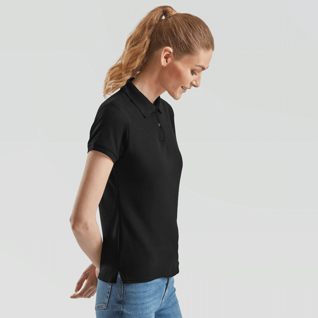 Kétgombos galléros kialakítás, a póló színével megegyező gombokkal